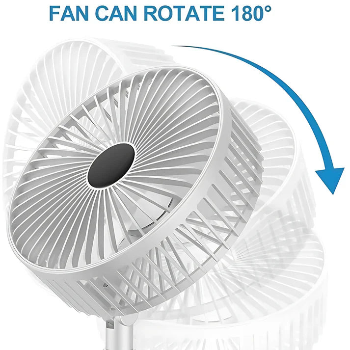 - The fan is equipped with a long-lasting rechargeable battery, providing up to [insert battery life, e.g., 6-8 hours] of uninterrupted cooling on a single charge.